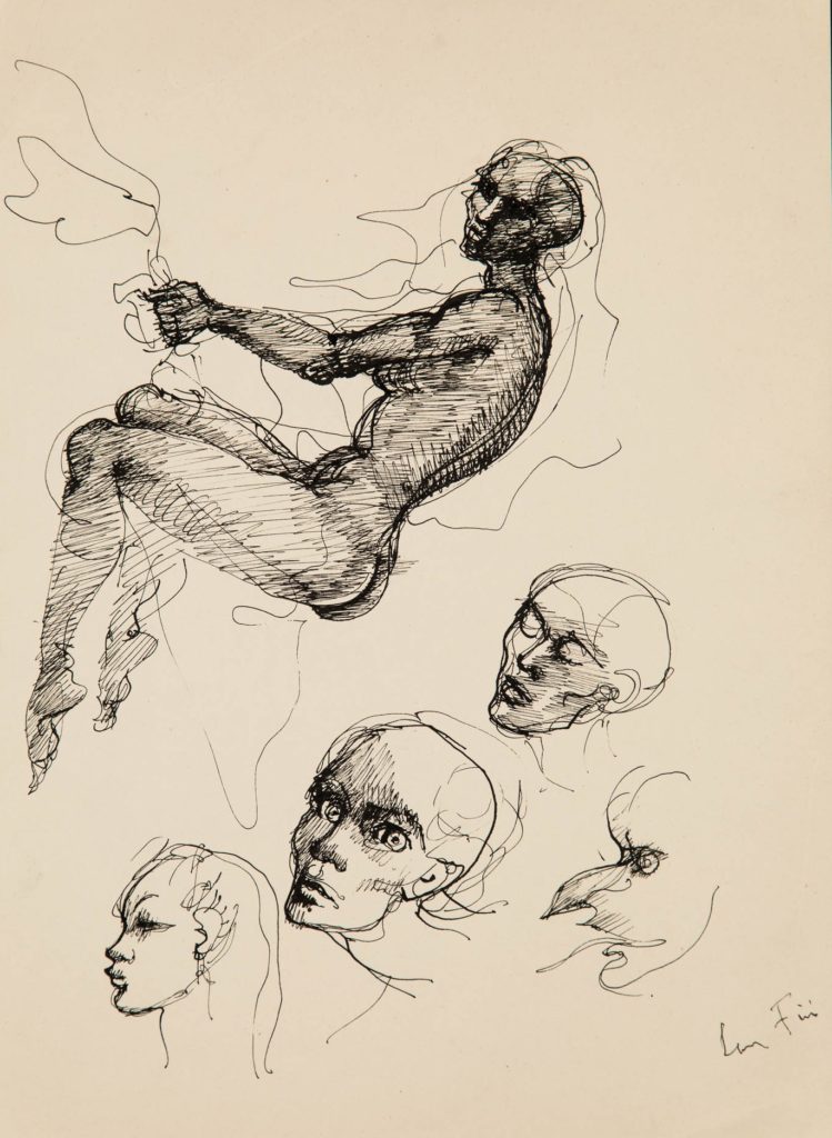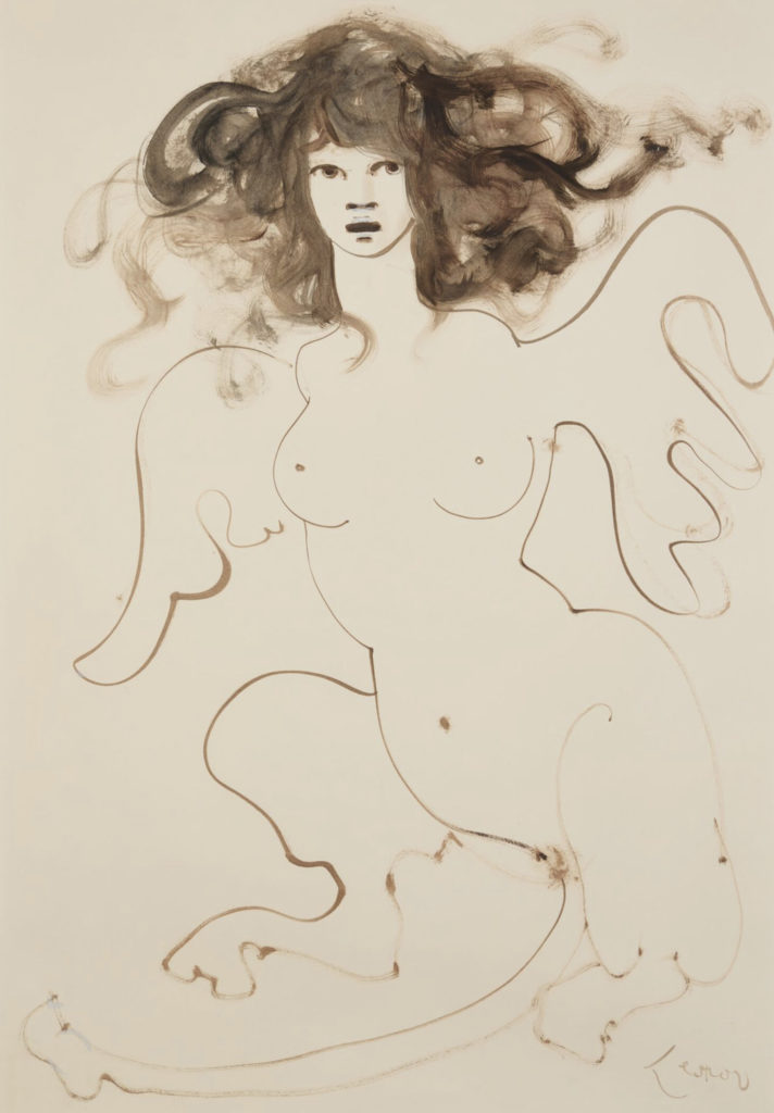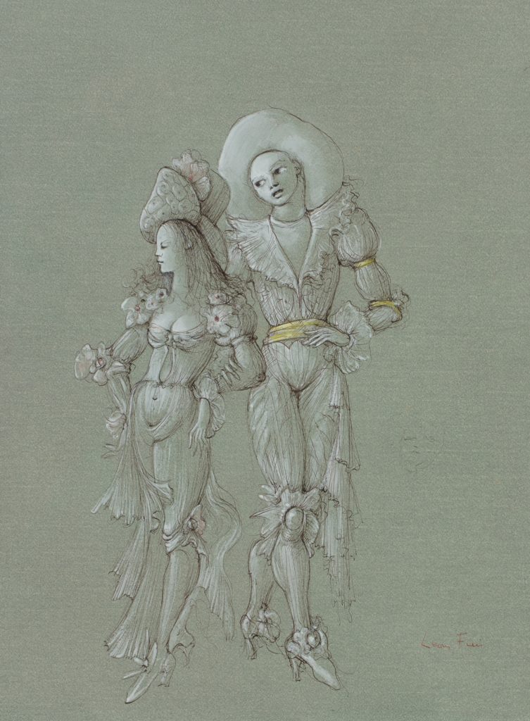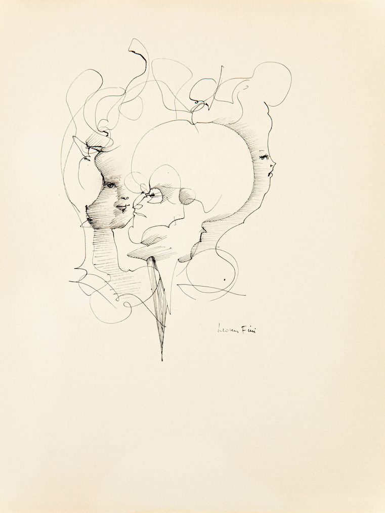 Fini’s works on paper span from intimate drawings of friends and characters, to highly-diversified literary illustrations and imaginative designs for theatre, ballet, and cinema. An accomplished illustrator, she took on the demanding texts of Shakespeare, Edgar Allan Poe, and Baudelaire, earning recognition from major poets, translators, and critics of her time, including Yves Bonnefoy, Alberto Moravia, and Georges Bataille. The exhibition showcases little-known drawings from Leonor Fini’s estate that capture the vivid spontaneity of the artist’s hand as well as more famous ones from the 40s and the 50s. Several exceptional oil paintings, such as the Sphinge, 1969, included in Leonor Fini’s Catalogue raisonné, stand out as pinnacles of her art on paper. The selection highlights some of her most emblematic themes, such as witches, metamorphoses — particularly through the figure of the sphinx — as well as her exploration of portraiture. Perhaps even more diverse than her canvases, Leonor Fini’s works on paper open a privileged window onto her unique position among the creators of the twentieth century.
